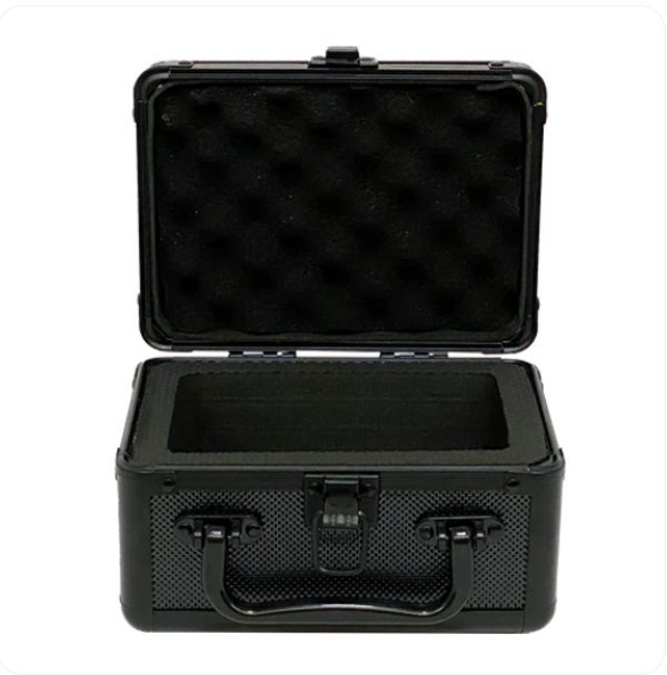 Do you bring as little as possible to shows? Here is the case for you! The Slab Case Mini. It's really meant to bring your bangers in a discreet bag or luggage. We did add a little handle for you in case you want to walk around the show strutting with this bad boy!